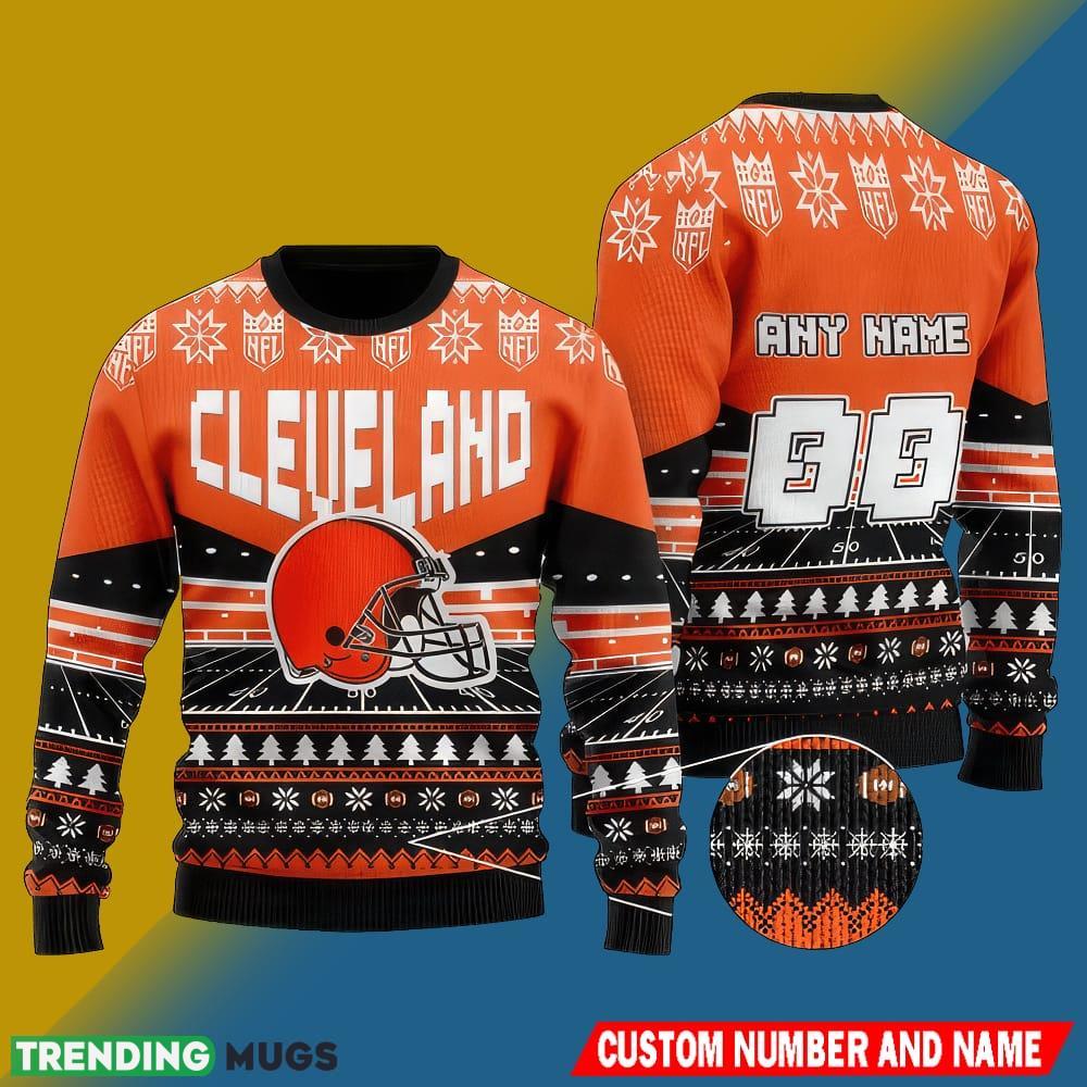 NFL Cleveland Browns Christmas Fun All Over Print Ugly Sweater Custom Number And Name Informations: