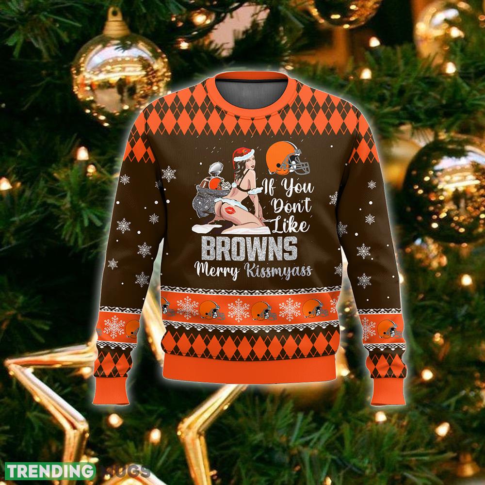 NFL Cleveland Browns Kissmyass Ugly Sweater For Fans Christmas Vintage Gift 3D Sweater