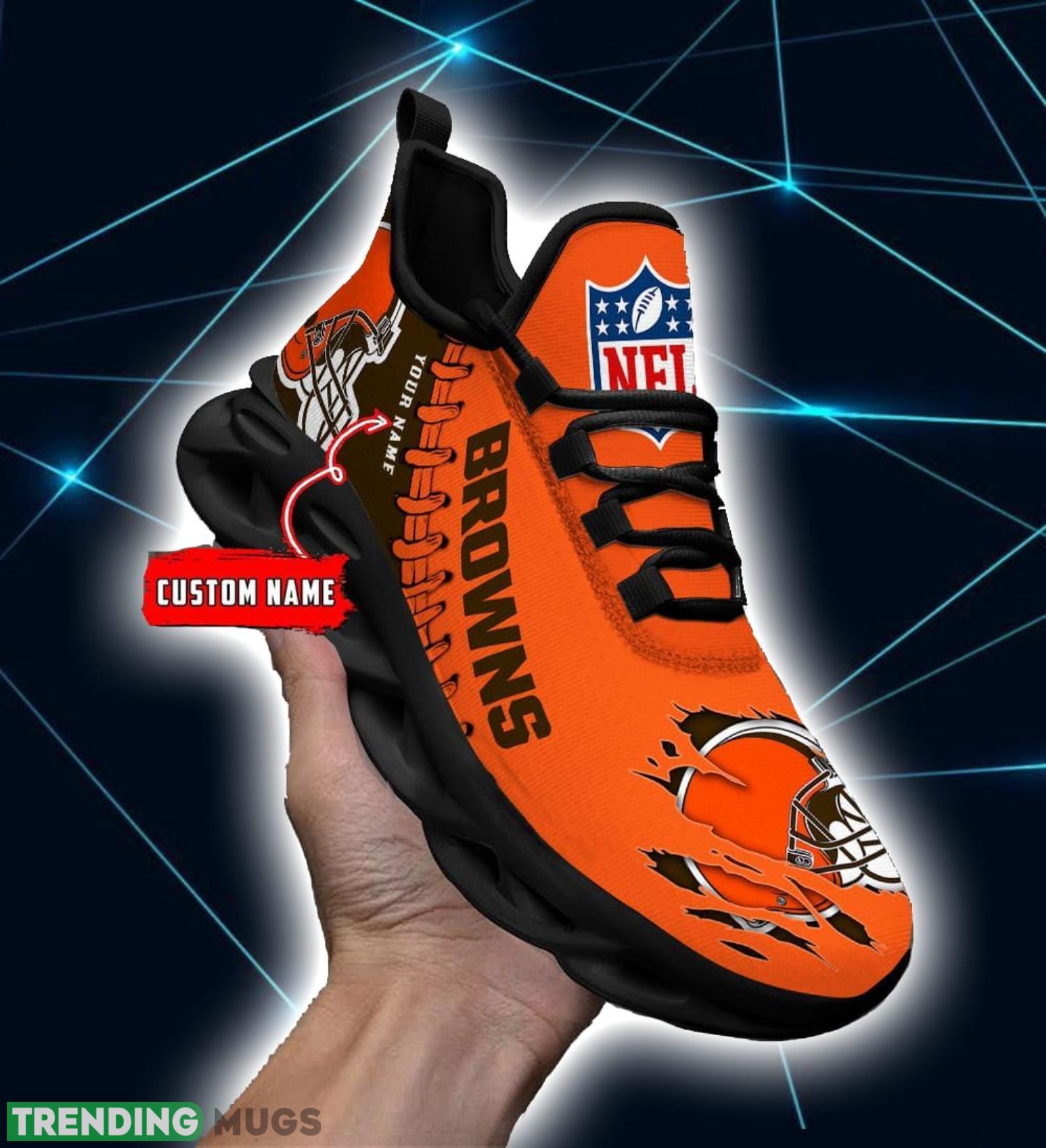 Show off your love for the Cleveland Browns with our NFL Custom Name Shoes! These 3D Max Soul Shoes Running Sneakers are a must-have for any die-hard fan. Crafted with utmost precision and attention to detail, these shoes are designed to make you stand out from the crowd.