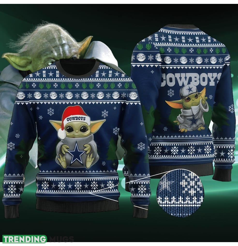 NFL Dallas Cowboys Baby Yoda Ugly Christmas 3D Sweater Neckline – NFL Dallas Cowboys Baby Yoda Ugly Christmas 3D Sweater Neckline