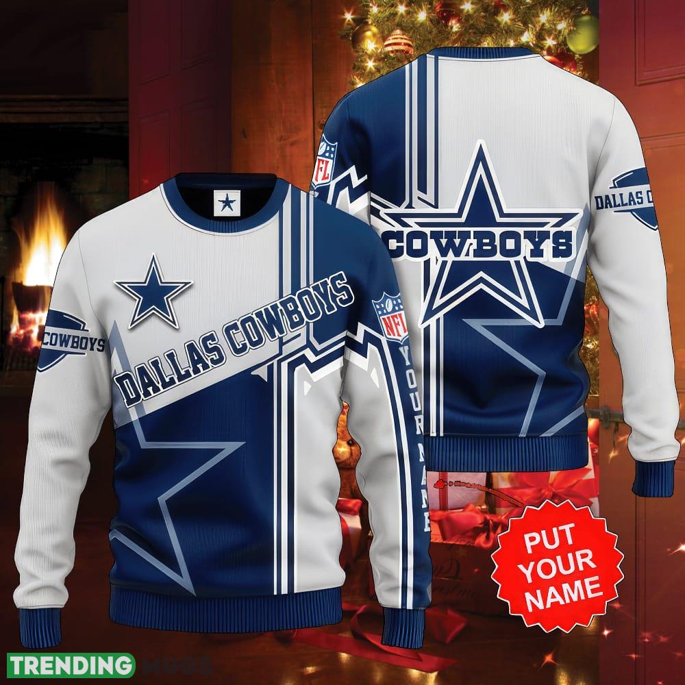 NFL Dallas Cowboys Grey Blue Big Logo Ugly Christmas Sweater Nativity Custom Name