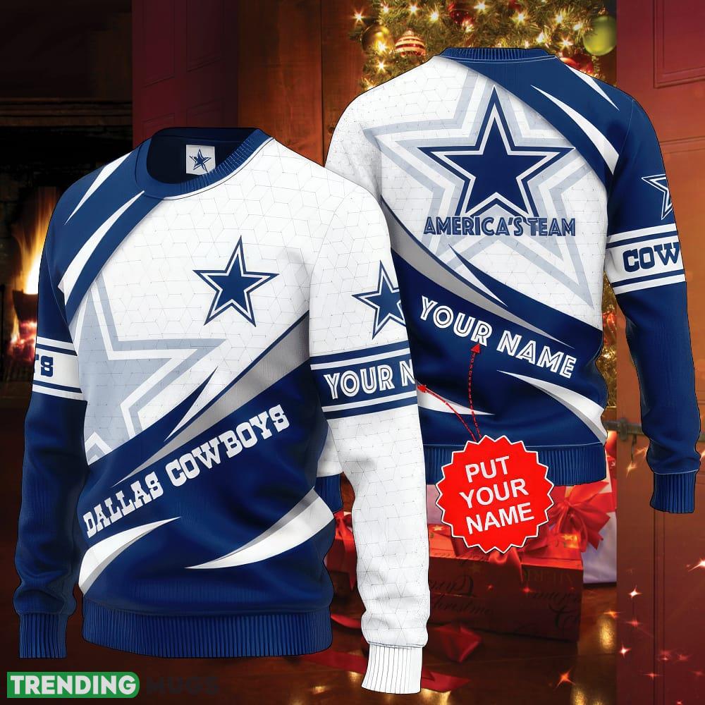 NFL Dallas Cowboys White Net Dark Blue Ugly Christmas Sweater Frost Custom Name Informations:
