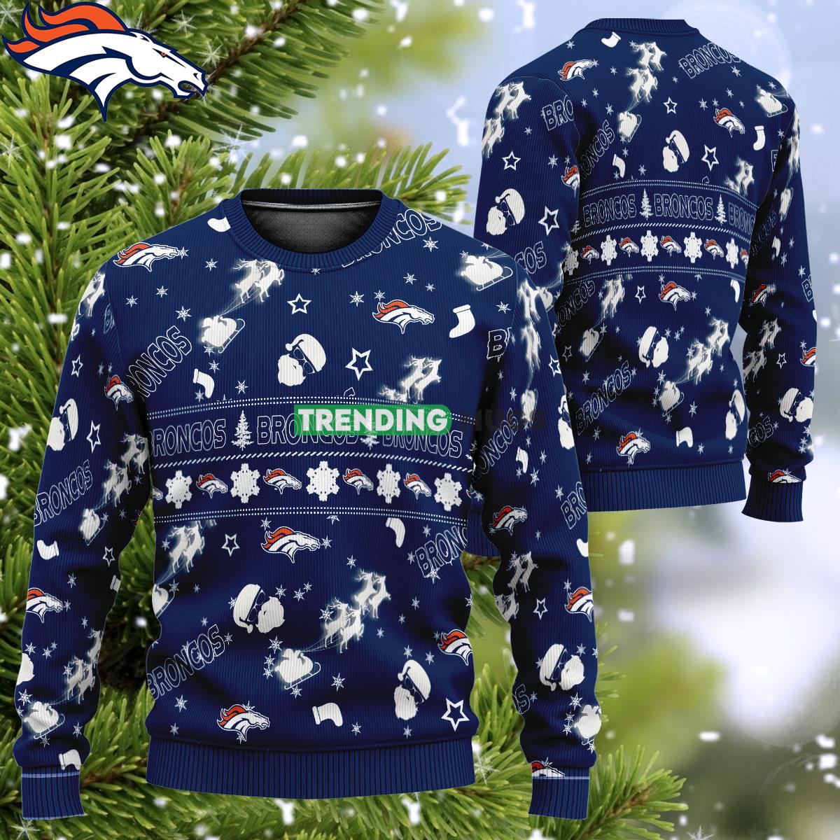 Get into the festive spirit with our NFL Denver Broncos Design Santa Reindeer Sleigh Ugly Christmas Sweater! Show off your love for the Denver Broncos while spreading holiday cheer. This eye-catching sweater features a unique design with Santa, reindeer, and a sleigh, all adorned with the iconic Broncos logo. Made with high-quality materials, it offers both comfort and durability. Perfect for holiday parties, family gatherings, or simply lounging by the fireplace, our Denver Broncos Christmas sweater is a must-have for any fan. Embrace the holiday season in style and let your team spirit shine with this one-of-a-kind ugly Christmas sweater.