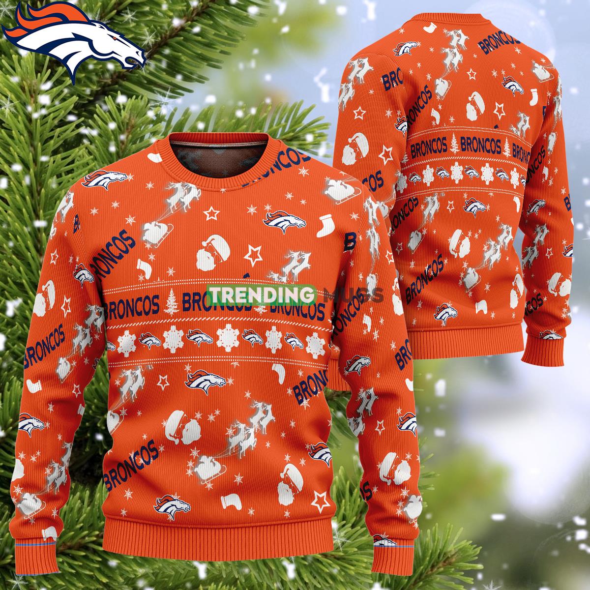 NFL Denver Broncos Santa Reindeer Rides Ugly Christmas 3D Sweater Gift For Men Women Informations: