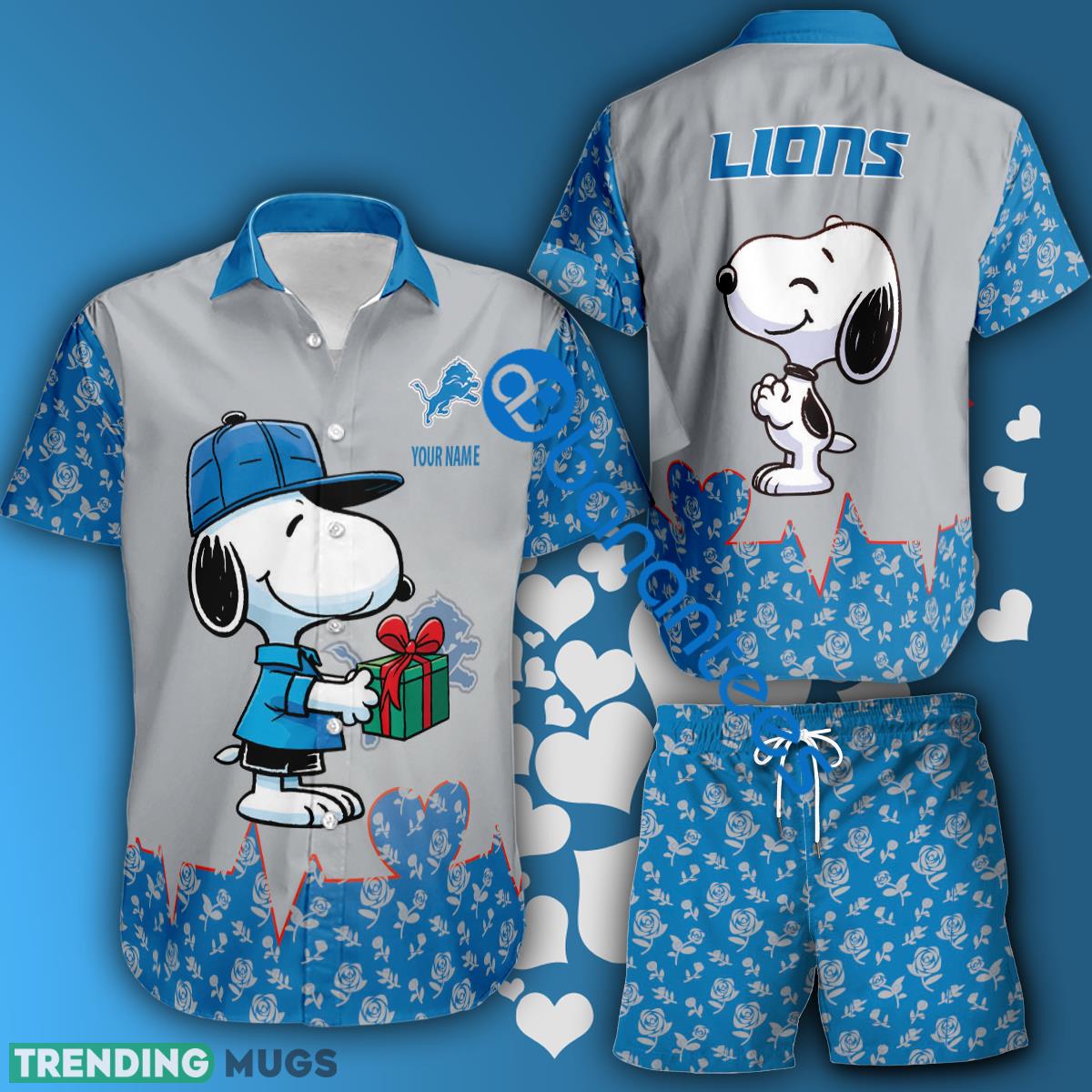 This design is available in a combo Hawaiian shirt & shorts. You can also get it separate. The default option is only one shirt or one pair of shorts. You have chosen a combo to get them both. This combo NFL Detroit Lions Snoopy Gift Boyfriend And Girlfriend Combo Hawaiian Shirt And Short Custom Name is perfect to go to the beach. Get yours now or make a great gift.