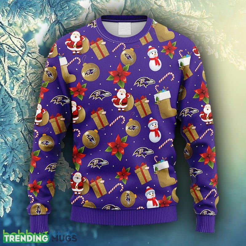 NFL Fans Baltimore Ravens Santa Claus Snowman Christmas Ugly Sweater For Men Women Informations: