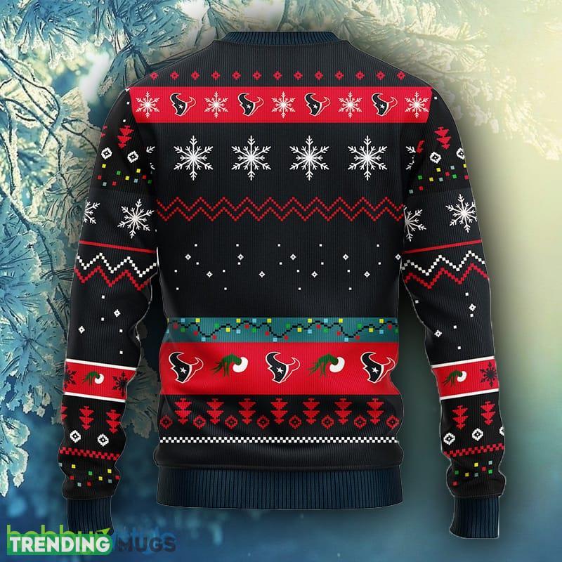 Crafted with utmost care and attention to detail, this sweater features a playful and unique design that combines the iconic Grinch with the unmistakable Houston Texans logo. The vibrant colors and intricate patterns make this sweater a true standout, ensuring you’ll be the center of attention at any holiday gathering or game day party.