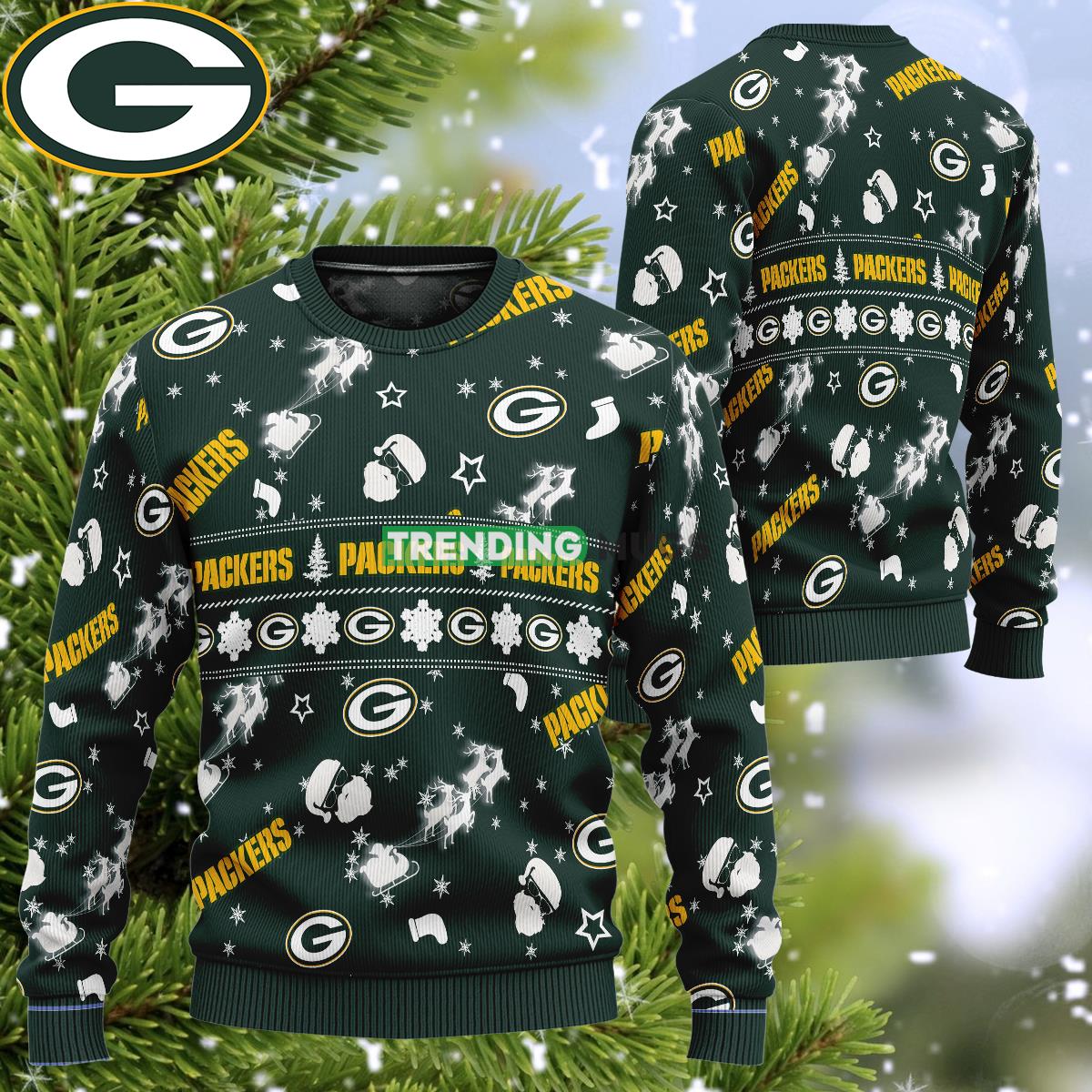 Featuring an eye-catching design, this sweater showcases Santa and his trusty reindeer taking a joyous ride through a winter wonderland. The iconic Green Bay Packers logo is proudly displayed, making it clear where your loyalties lie. With its vibrant colors and attention to detail, this sweater is a true standout.