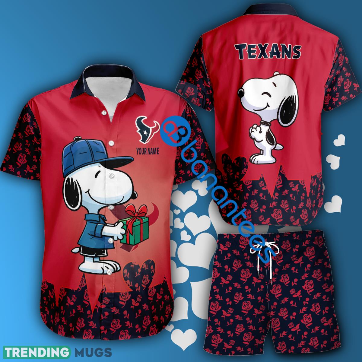 This design is available in a combo Hawaiian shirt & shorts. You can also get it separate. The default option is only one shirt or one pair of shorts. You have chosen a combo to get them both. This combo NFL Houston Texans Snoopy Gift Boyfriend And Girlfriend Combo Hawaiian Shirt And Short Custom Name is perfect to go to the beach. Get yours now or make a great gift.
