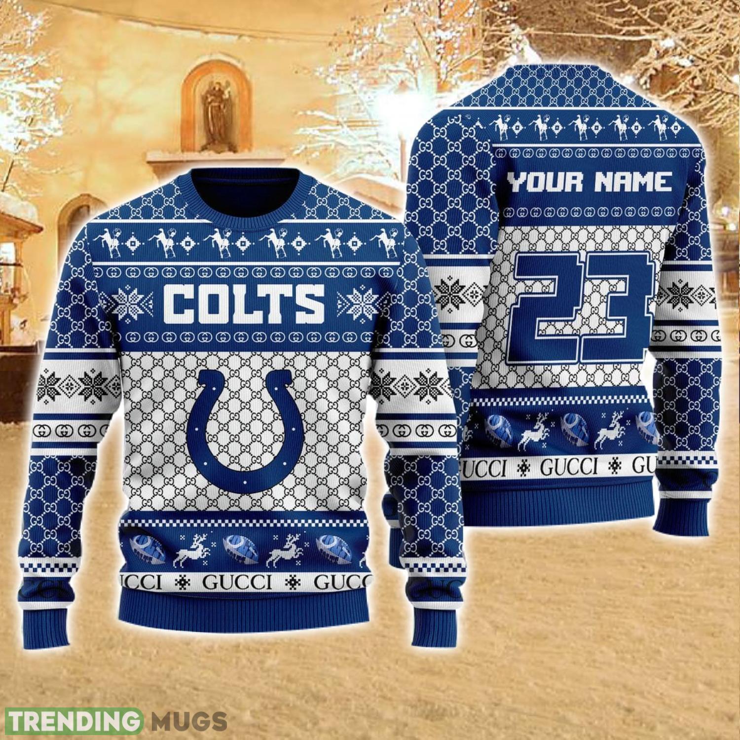 Don’t miss out on this limited edition item – order yours today and be the envy of every Colts fan! Spread the holiday cheer while proudly supporting your team with this personalized Christmas sweater. Go Colts!