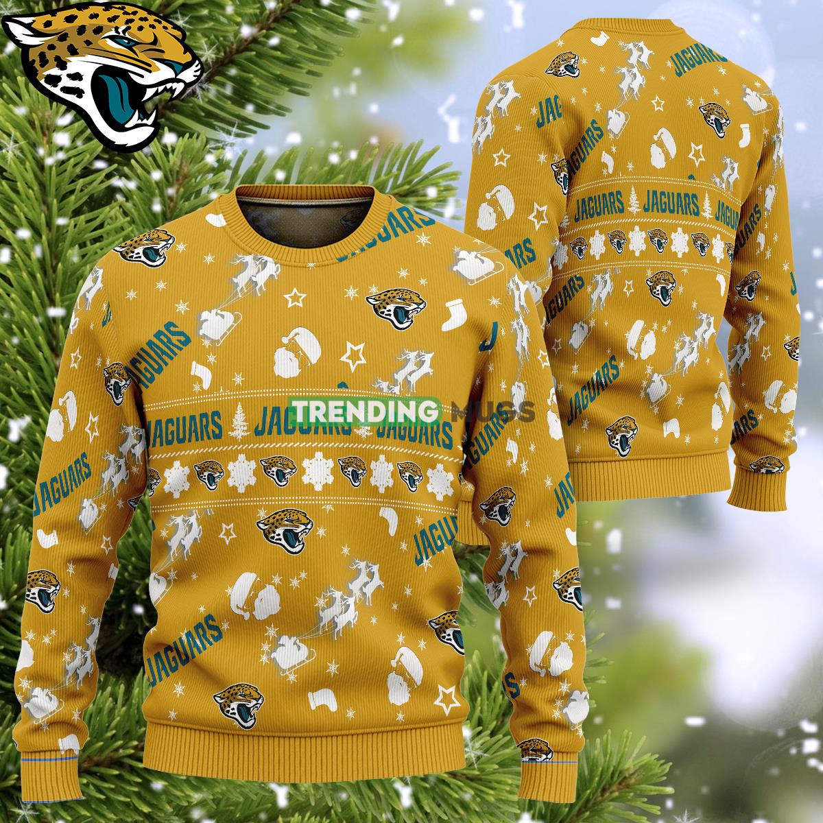 Get ready to sleigh the holiday season with our NFL Jacksonville Jaguars Snow Santa Reindeer Ugly Christmas 3D Sweater Gift! This festive and eye-catching sweater is the perfect way to show off your team spirit while staying cozy and stylish during the chilly winter months.