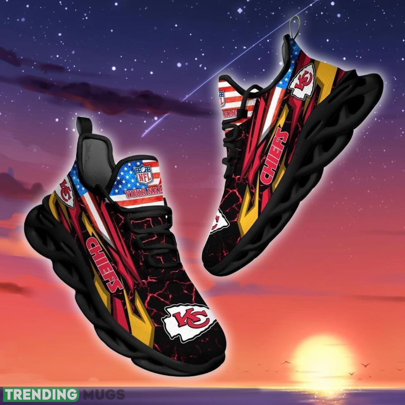Show off your love for the Kansas City Chiefs in style with these custom name Max Soul shoes! These one-of-a-kind shoes feature the iconic NFL Kansas City Chiefs logo and flag, making them the perfect gift for any die-hard fan. Personalize them with your own name to truly make them your own. Step out in ultimate team spirit with these unique and eye-catching shoes that are sure to turn heads wherever you go. Order yours today and elevate your fan gear to the next level!