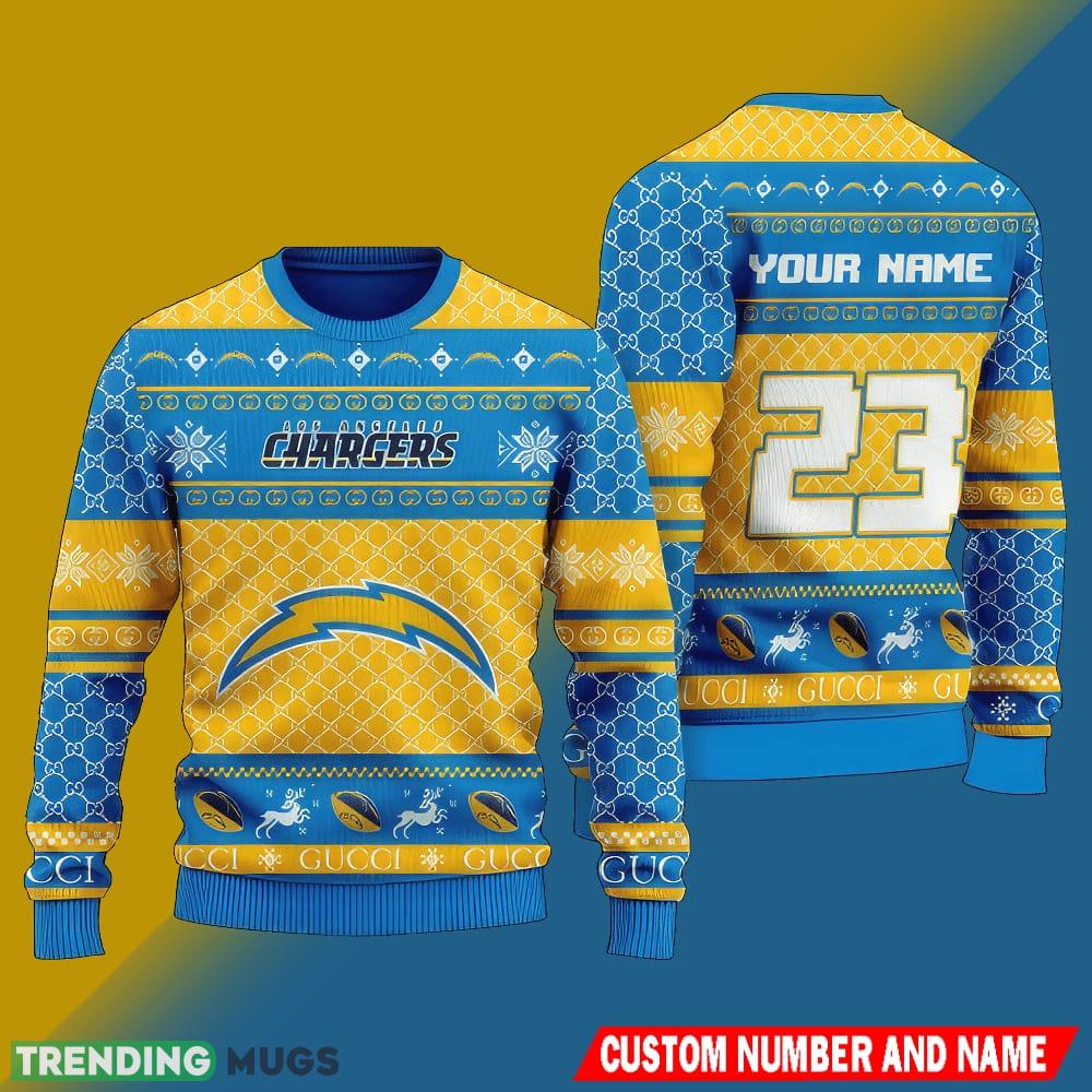 Crafted from high-quality materials, this sweater is not only stylish but also comfortable to wear. The soft fabric ensures a cozy fit, making it perfect for those chilly winter game days or holiday gatherings. It’s a great gift idea for any Chargers fan in your life or a treat for yourself.