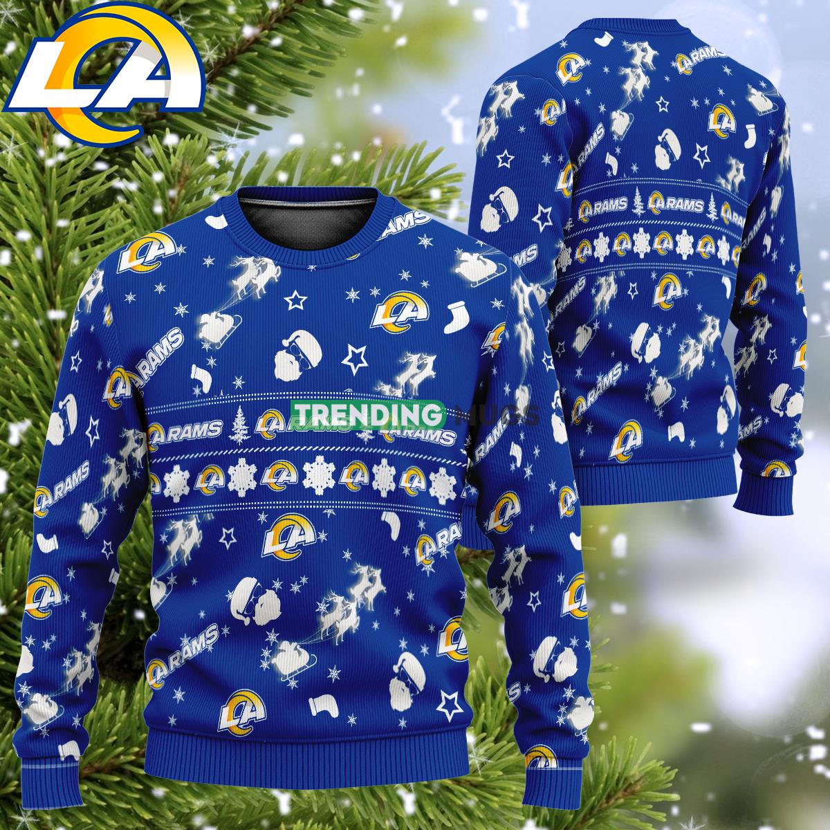 NFL Los Angeles Rams Design Santa Reindeer Sleigh Ugly Christmas 3D Sweater Gift For Men Women Informations: