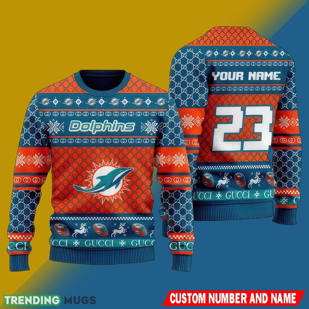 NFL Miami Dolphins Christmas Apparel All Over Print Ugly Sweater Custom Number And Name – NFL Miami Dolphins Christmas Apparel All Over Print Ugly Sweater Custom Number And Name