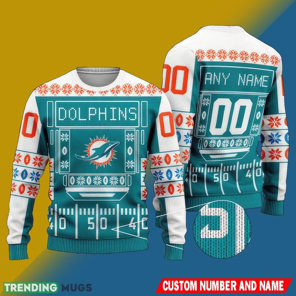 NFL Miami Dolphins Christmas Candy AOP Ugly Sweater Custom Number And Name Informations: