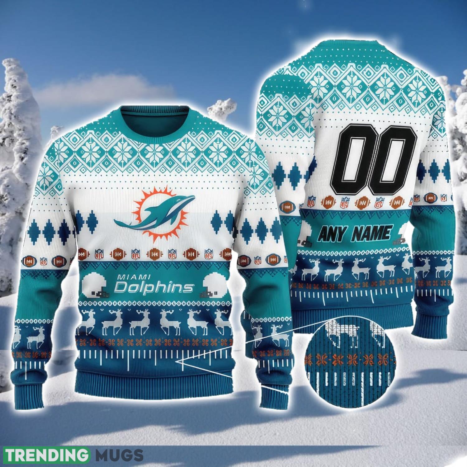 NFL Miami Dolphins Custom Name And Number 3D Ugly Christmas Sweater Christmas Gift Informations: