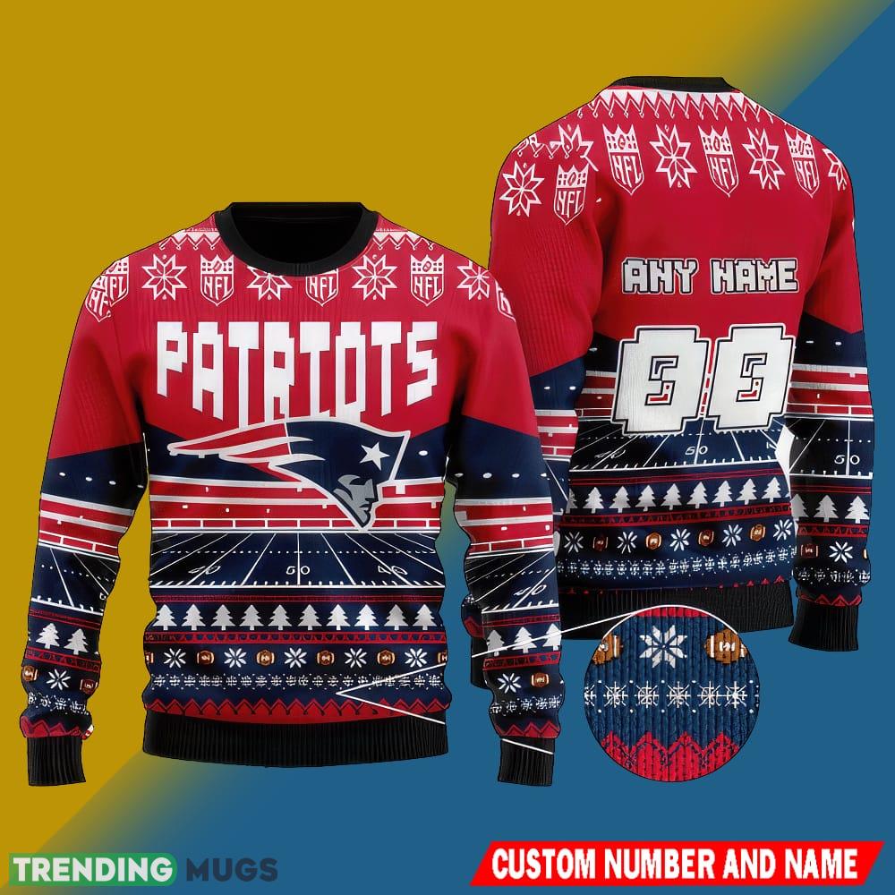 NFL New England Patriots Christmas Seasonal AOP Ugly Sweater Custom Number And Name Informations: