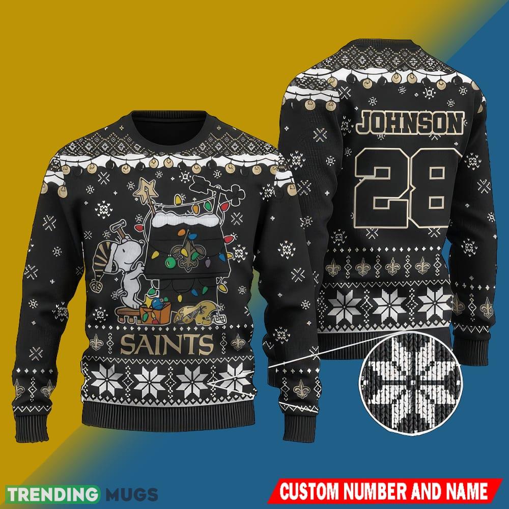 Crafted with the utmost attention to detail, this custom knitted sweater features the iconic New Orleans Saints logo, ensuring that you’ll be the ultimate fan at any holiday gathering. But that’s not all – you can even personalize it with your own custom number and name, making it a truly one-of-a-kind piece.