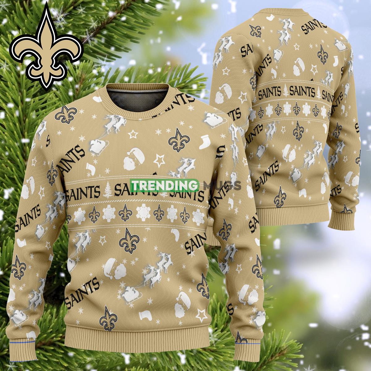 NFL New Orleans Saints Santa Reindeer Rides Ugly Christmas 3D Sweater Gift For Men Women