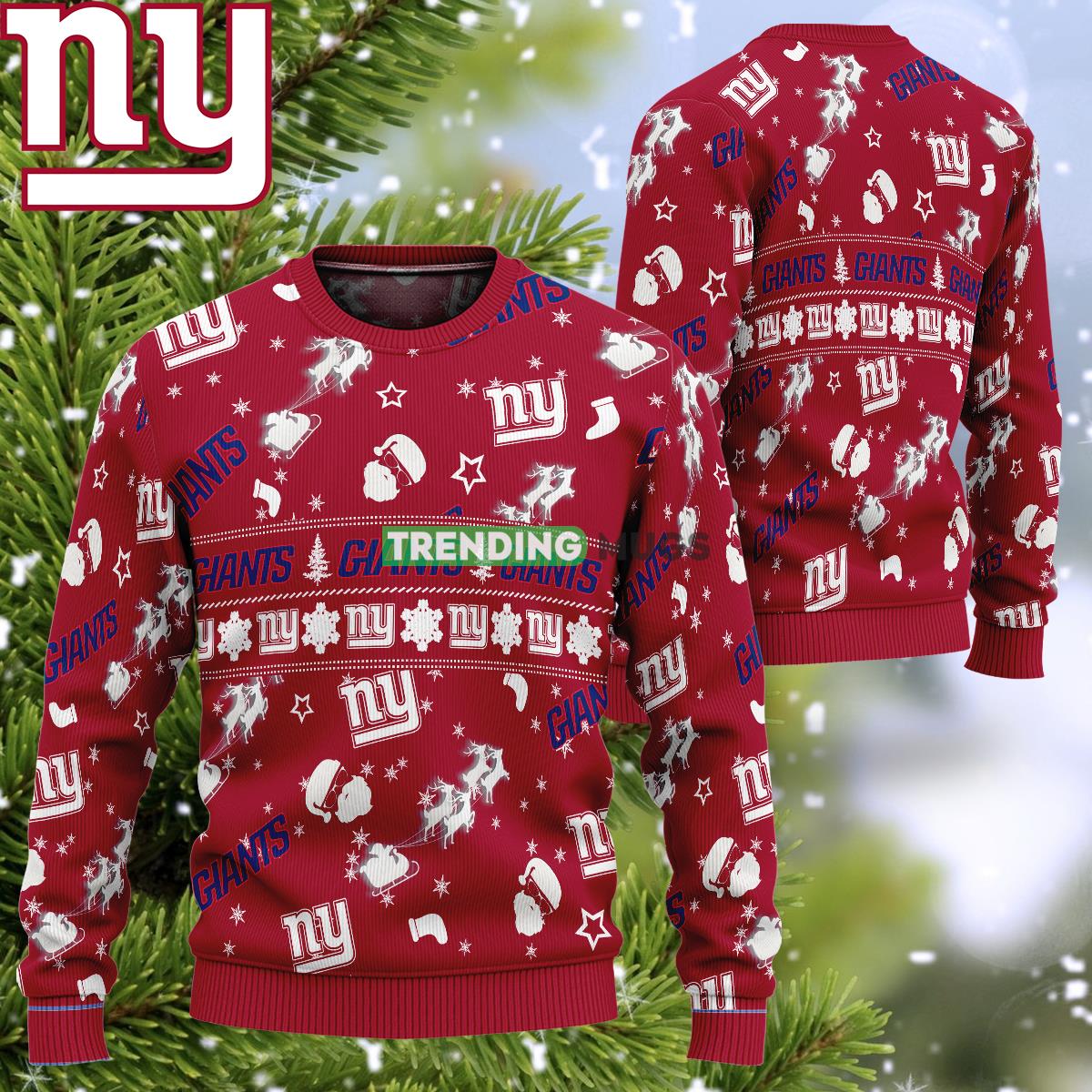 Get into the festive spirit with our NFL New York Giants Snow Santa Reindeer Ugly Christmas Sweater! Designed exclusively for the die-hard fans, this cozy sweater is the perfect gift to spread some holiday cheer. Show off your team pride in style with the all-over print featuring the iconic New York Giants logo and a playful Santa riding his reindeer through a winter wonderland. Crafted with premium quality materials, this sweater guarantees maximum comfort and durability. Whether you’re attending an ugly sweater party or watching the game from the comfort of your home, this sweater is sure to make a statement. Don’t miss out on this must-have AOP gift for all New York Giants fans!