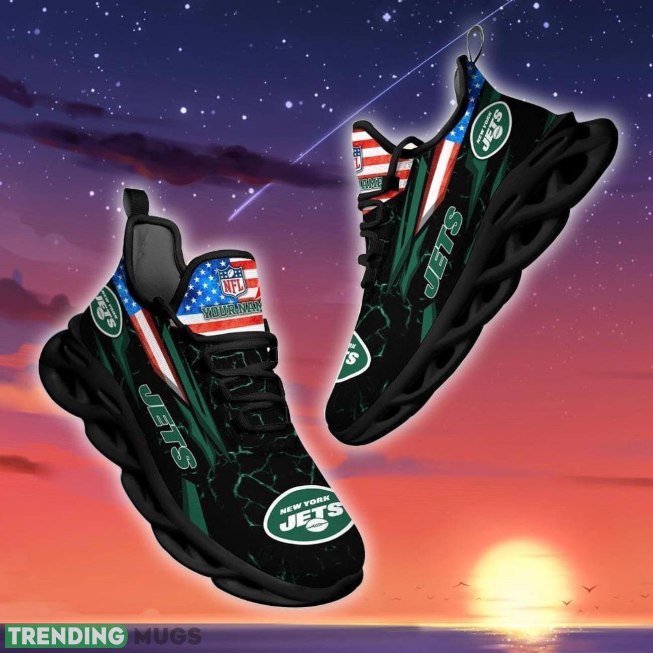 Show off your love for the New York Jets in style with these custom Max Soul shoes! Featuring the iconic NFL Jets logo and flag design, these shoes are the perfect gift for any die-hard fan. Personalize them with your name to make them truly one-of-a-kind. Step up your game day attire with these unique and eye-catching shoes that are sure to turn heads. Order yours today and strut your team spirit with pride!