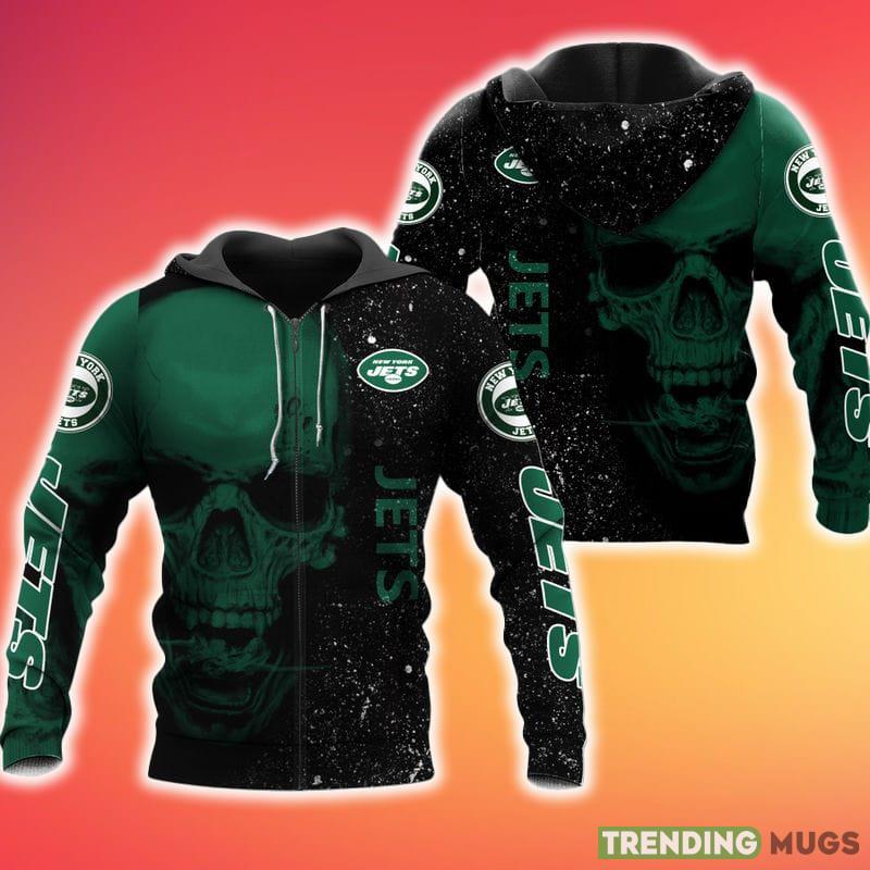 Some of the NFL New York Jets Red 3D Hoodie Zip Hoodie AOP Skull Halloween Gift For Fans photos