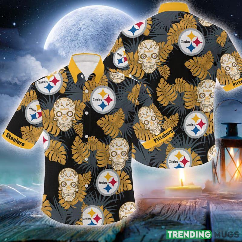 NFL Pittsburgh Steelers Skull Leaf Halloween Fans Hawaiian Shirt Gift For Men And Women Details: