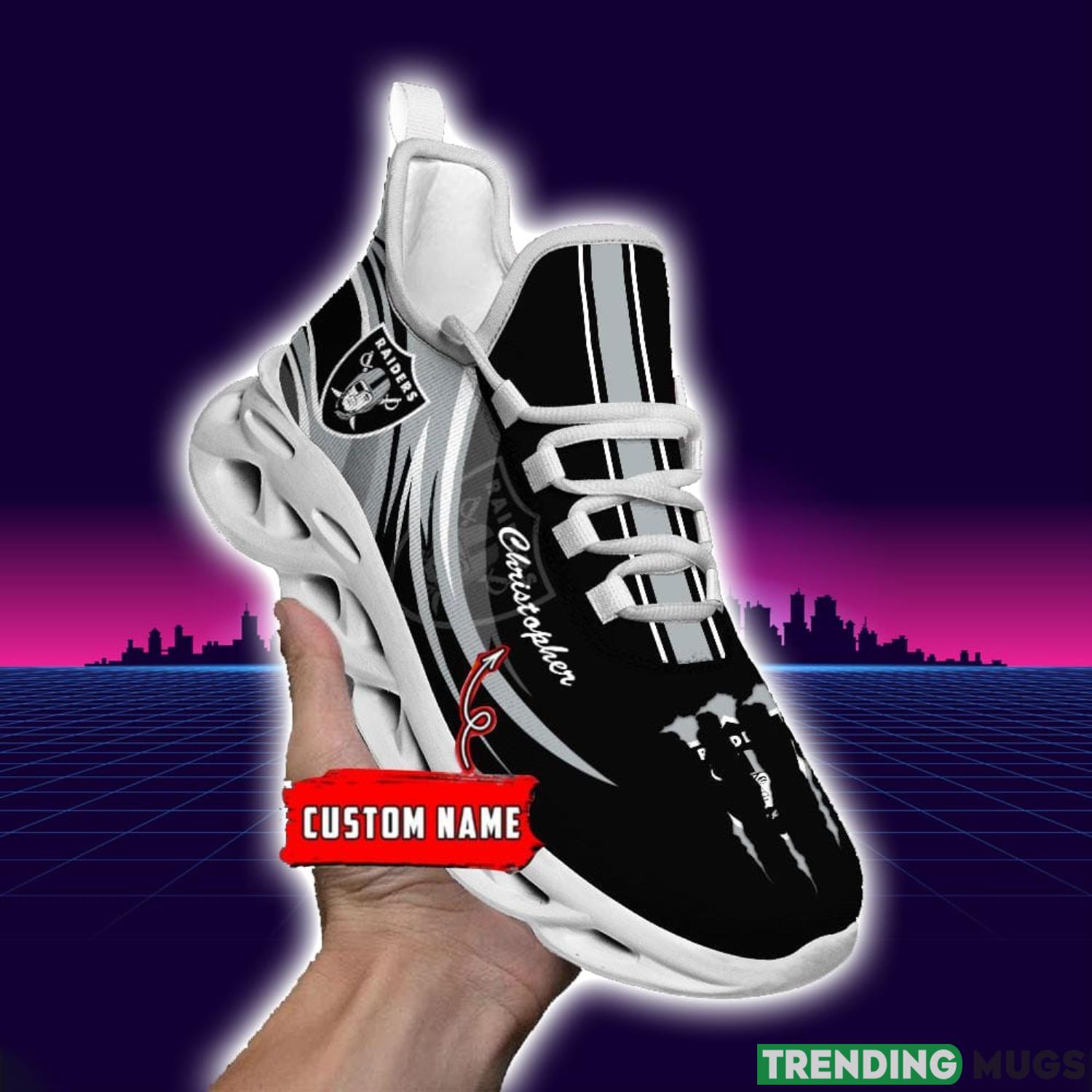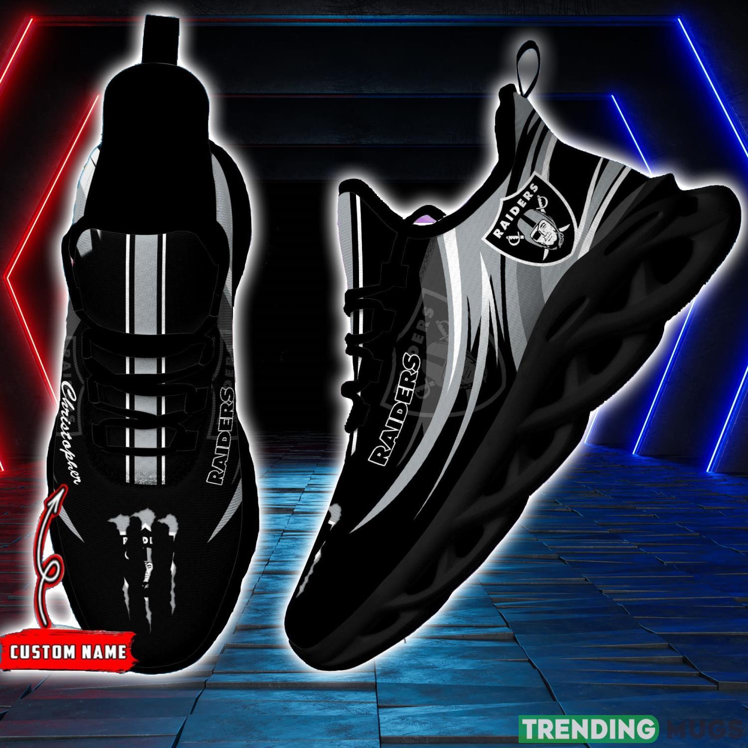 The NFL Sport Fans Las Vegas Raiders Personalized Name Max Soul Sneakers are the ultimate gift for any dedicated football enthusiast. These sneakers showcase your unwavering support for the Las Vegas Raiders while adding a personalized touch to your style.