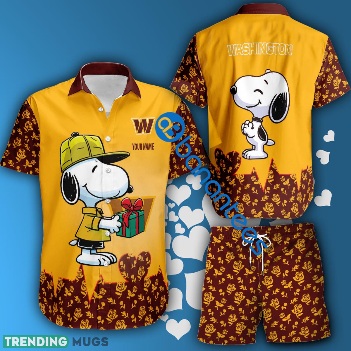 NFL Washington Commanders Snoopy Gift Boyfriend And Girlfriend Hawaiian Shirt And Short Set Custom Name Details: