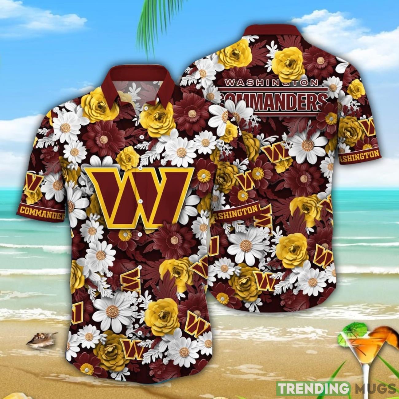 NFL Washington Commanders Summer Beach Shirt Flower Sunny Hawaiian Shirt Details: