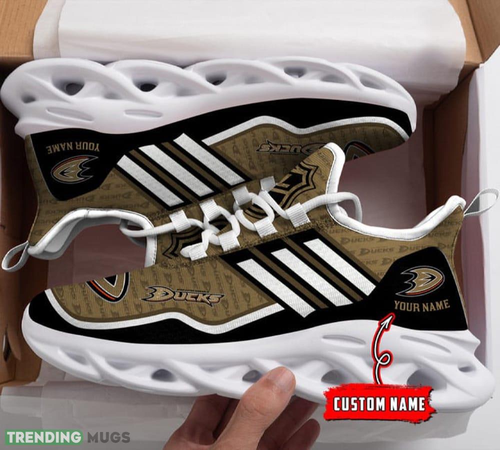 This NHL Anaheim Ducks Custom Name Max Soul Shoes Full Print For Men Women Sports Sneakers is a breathable, lightweight, and comfortable casual outdoor shoe that has a unique design. It is made of a mesh fabric which makes it sweat absorbent and breathable, while the rubber bottom ensures traction, comfort, and durability. It is available in two colors: black or white sole. There are two styles of shoelace holes so you can choose your preference.