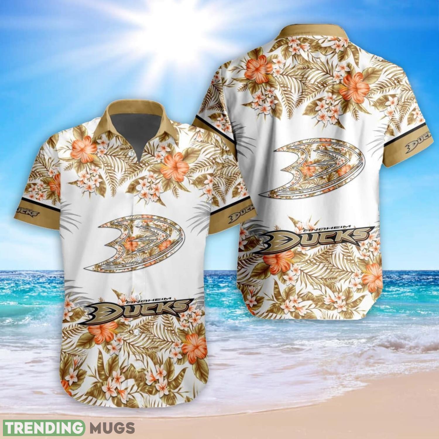 Crafted with utmost care and attention to detail, this Hawaiian shirt features a unique blend of the Anaheim Ducks logo and a mesmerizing tropical flower pattern. The combination of the iconic team emblem and the vibrant floral design creates a stunning visual appeal that is sure to turn heads wherever you go. Whether you’re cheering on the Ducks from the stands or enjoying a tropical getaway, this shirt is a must-have for any devoted fan.