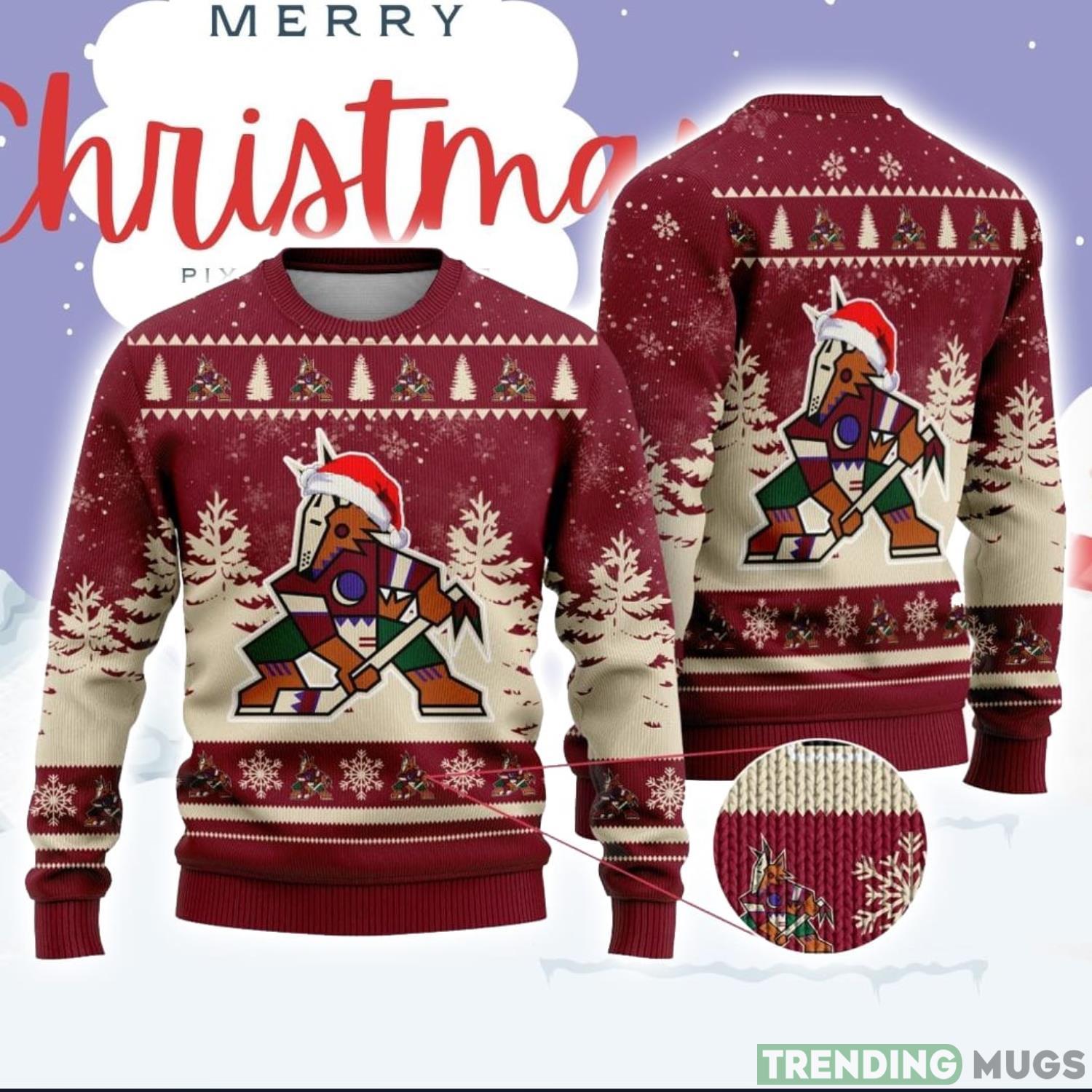 Featuring the iconic Arizona Coyotes logo wearing a Santa hat, this sweater combines team spirit with Christmas cheer. The vibrant colors and high-quality design ensure that you’ll stand out from the crowd at any holiday gathering or game night. Made from premium materials, this sweater is as comfortable as it is stylish, making it ideal for those chilly winter nights.