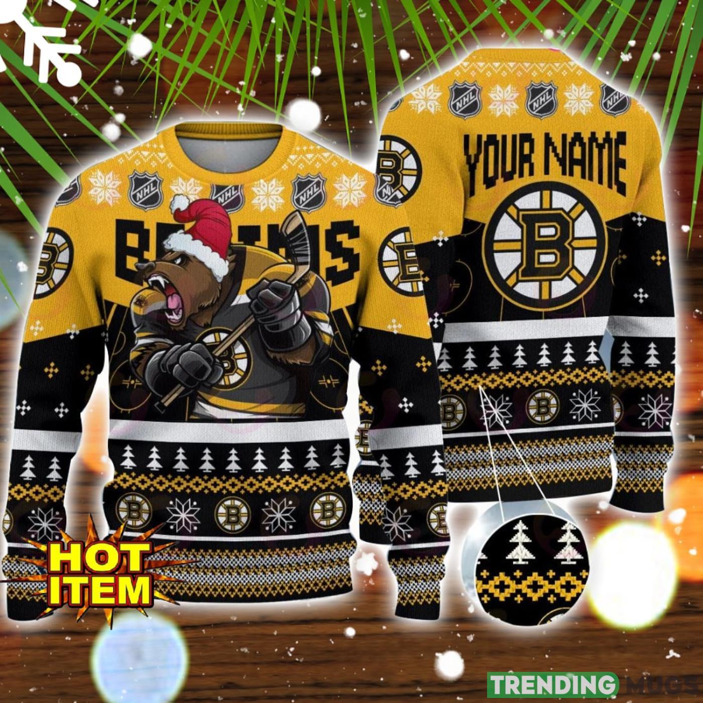 NHL Boston Bruins Angry Mascot Design Ugly Christmas Sweater Christmas Gift For Sport Fans Custom Name