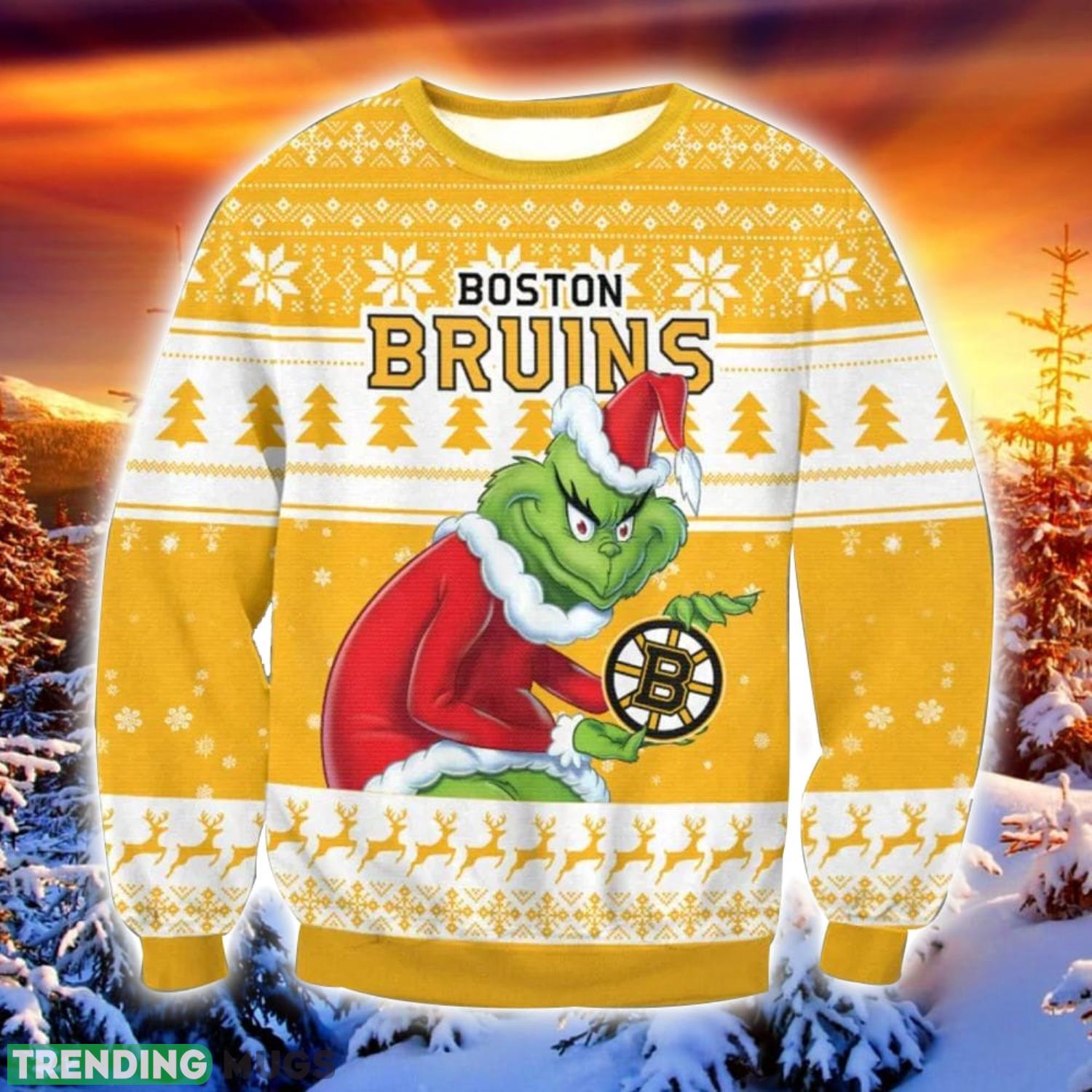 Get ready to show off your team spirit and holiday cheer with the NHL Boston Bruins Grinch Ugly Christmas Sweater! This trending sweater is the perfect addition to your festive wardrobe for the 2023 Christmas holidays.