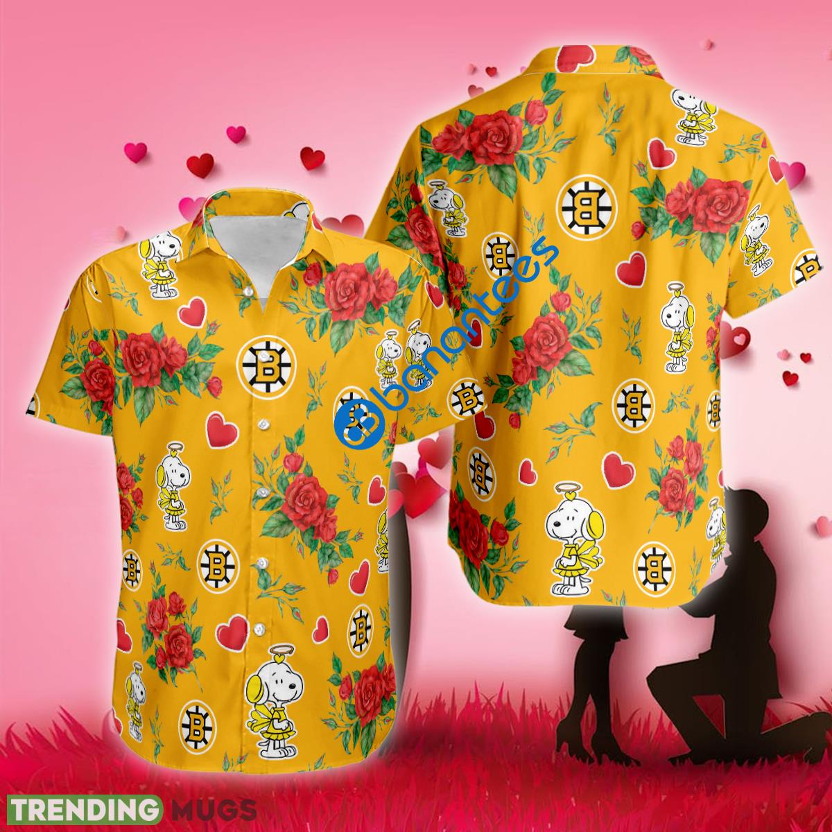 NHL Boston Bruins Snoopy Cute Valentines Day Hawaiian Shirt AOP Gift Fans Details: