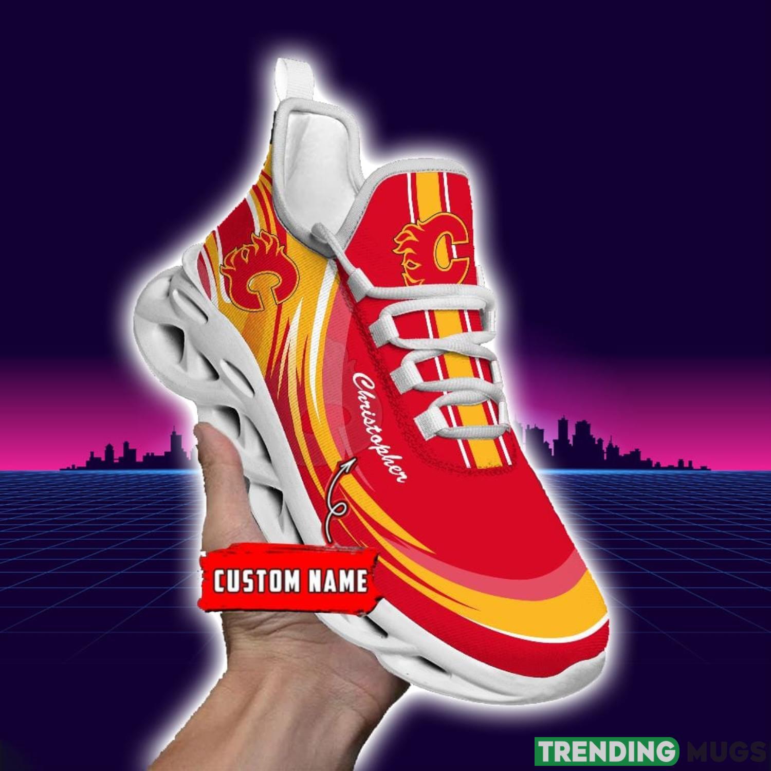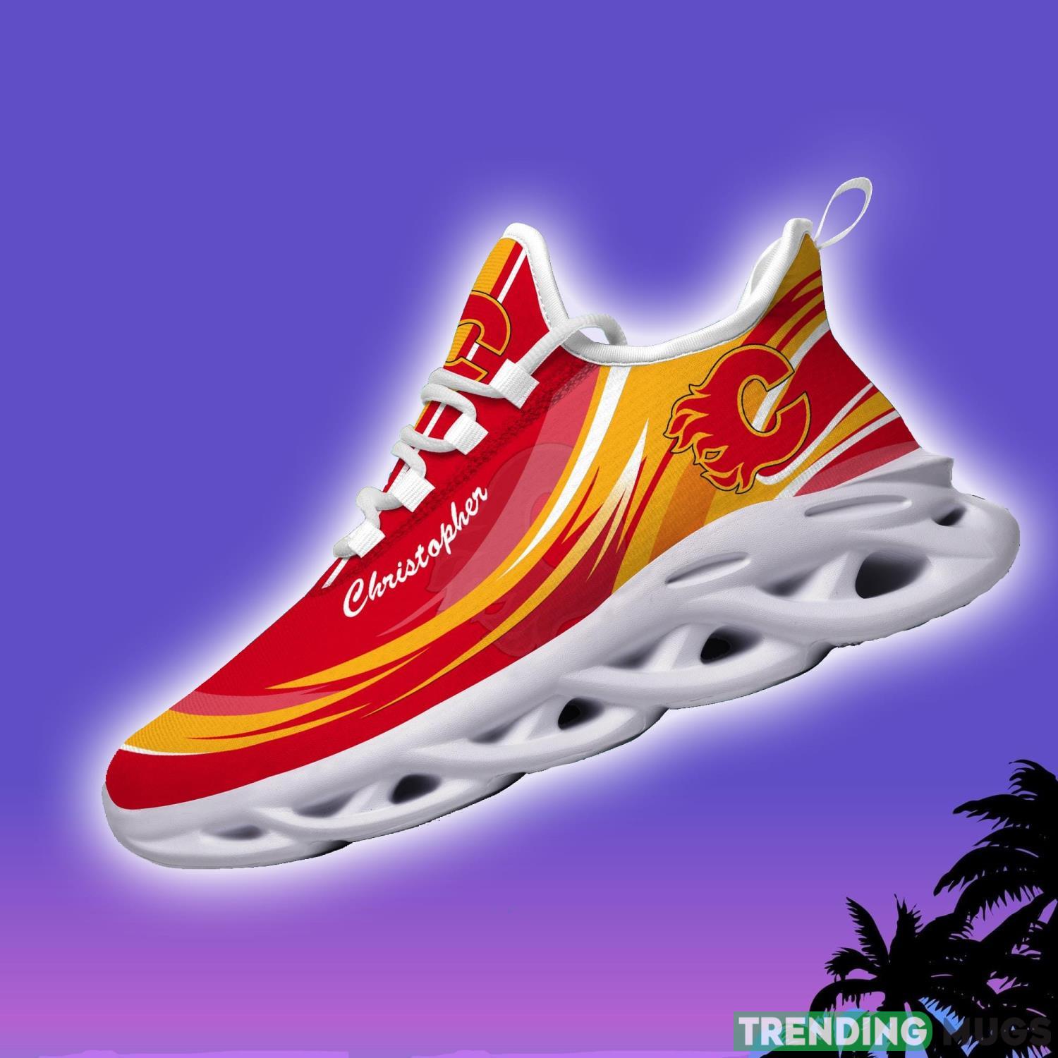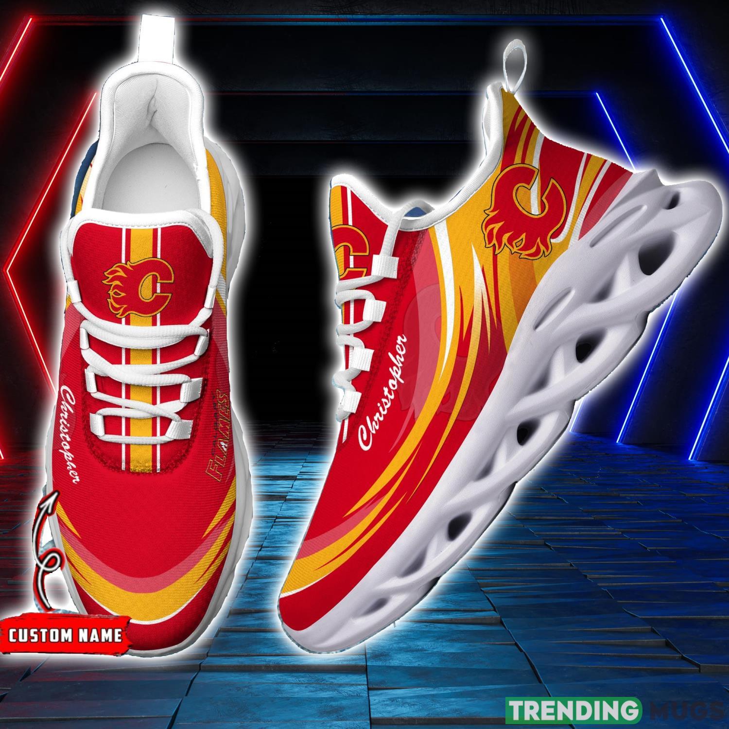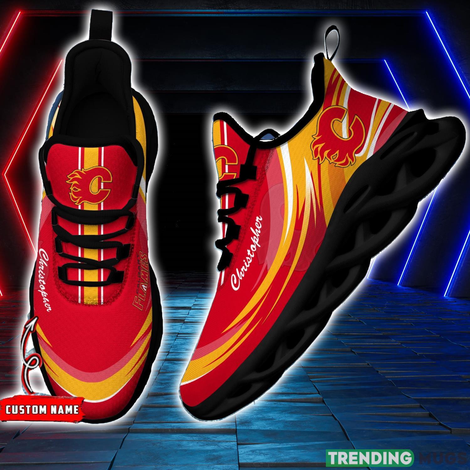 Don’t miss your chance to own these NHL Calgary Flames Personalized Name Max Soul Men And Women Gift Sneakers. Order yours today and step into the spotlight as the ultimate Flames supporter.