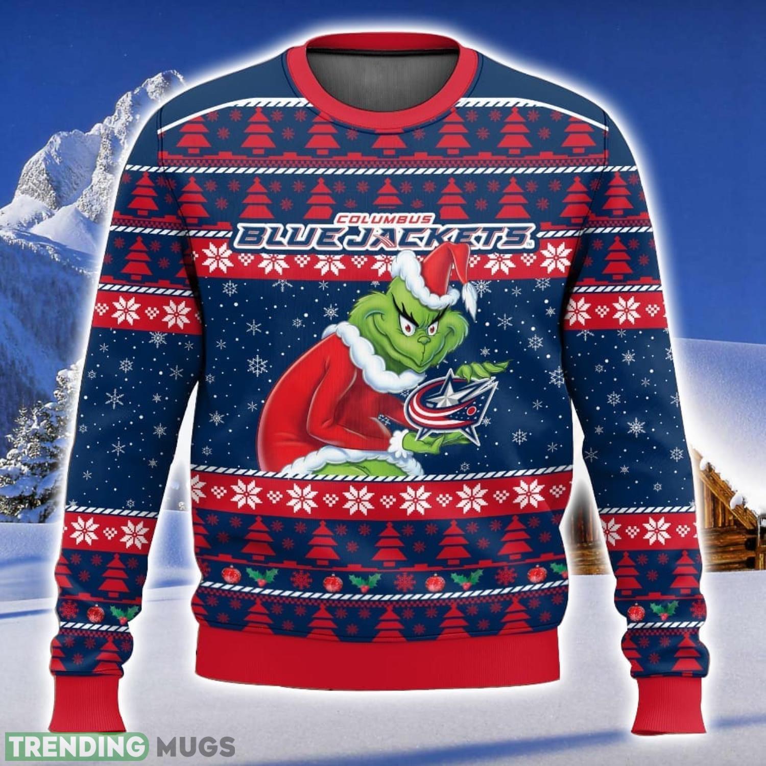 NHL Columbus Blue Jackets Grinch 3D Christmas Sweater Ugly Christmas Sweater Christmas Gift Ideas Product Photo 1