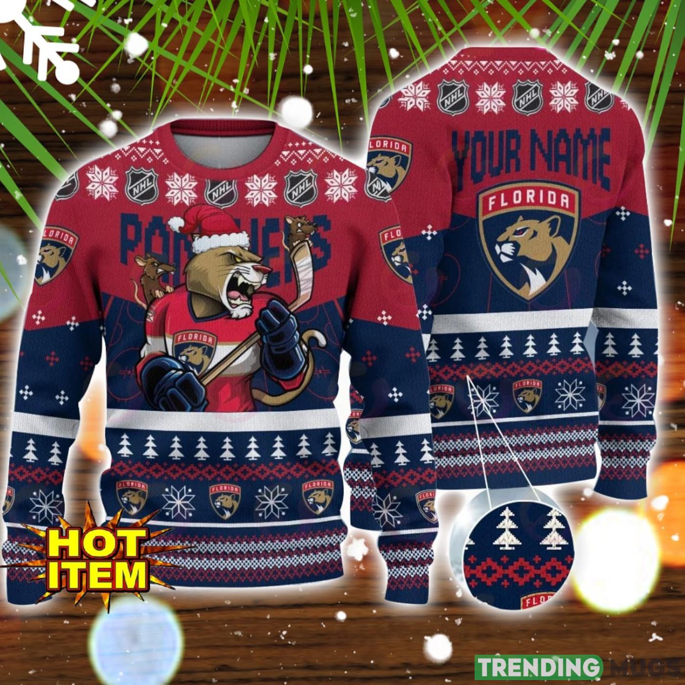 NHL Florida Panthers Angry Mascot Design Ugly Christmas Sweater Christmas Gift For Sport Fans Custom Name Product Photo 1