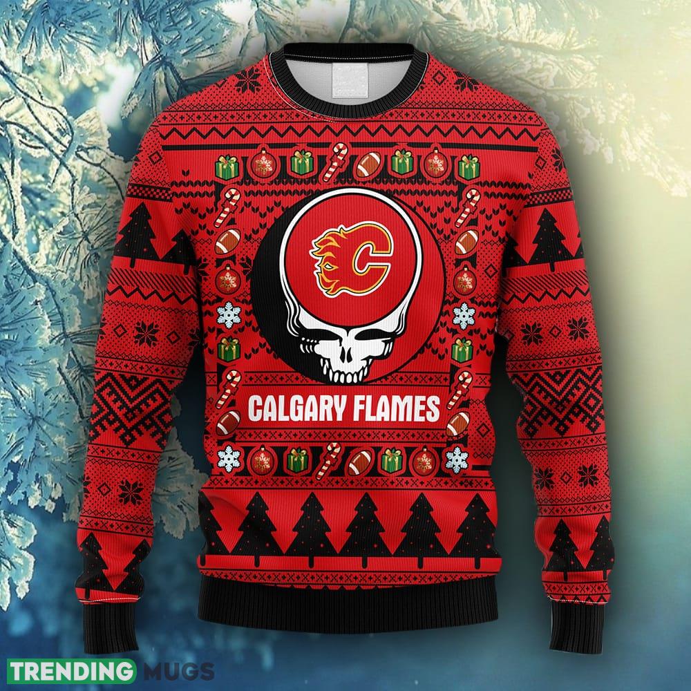 NHL Logo Calgary Flames Grateful Dead Ugly Christmas Fleece Sweater For Men Women – NHL Calgary Flames Grateful Dead Ugly Christmas Fleece Sweater_1