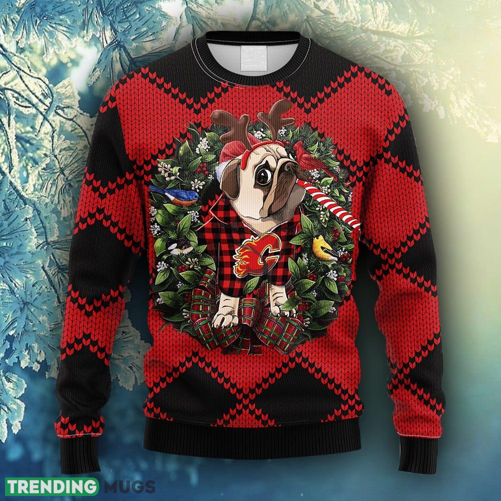 Spread some holiday cheer and show your unwavering support for the Calgary Flames with the NHL Logo Calgary Flames Pub Dog Christmas Ugly Sweater. It’s time to elevate your holiday wardrobe and let your team pride shine bright. Grab yours today and make this Christmas season a memorable one!