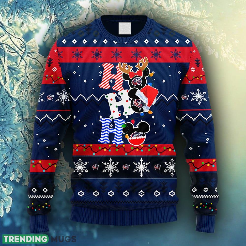 NHL Logo Columbus Blue Jackets HoHoHo Mickey Christmas Ugly Sweater For Men Women – NHL Columbus Blue Jackets HoHoHo Mickey Christmas Ugly Sweater_1
