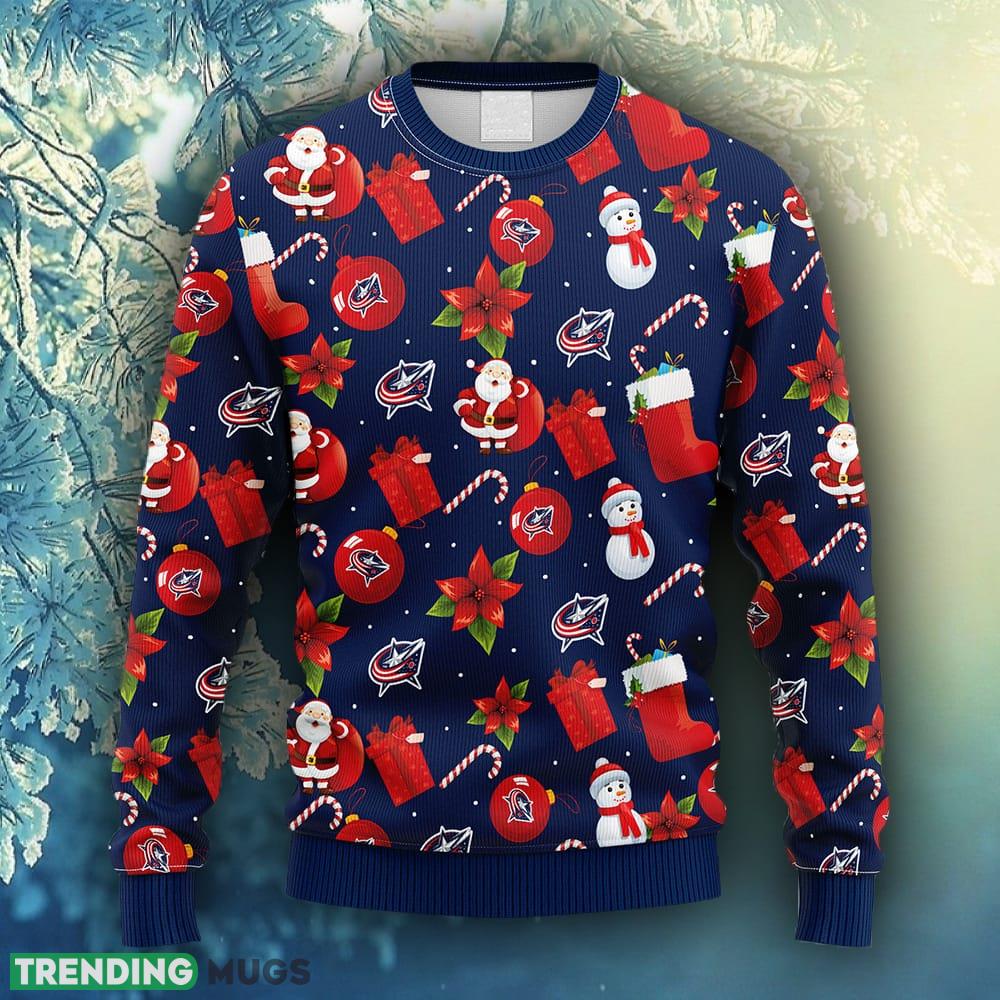 NHL Logo Columbus Blue Jackets Santa Claus Snowman Christmas Ugly Sweater For Men Women Informations: