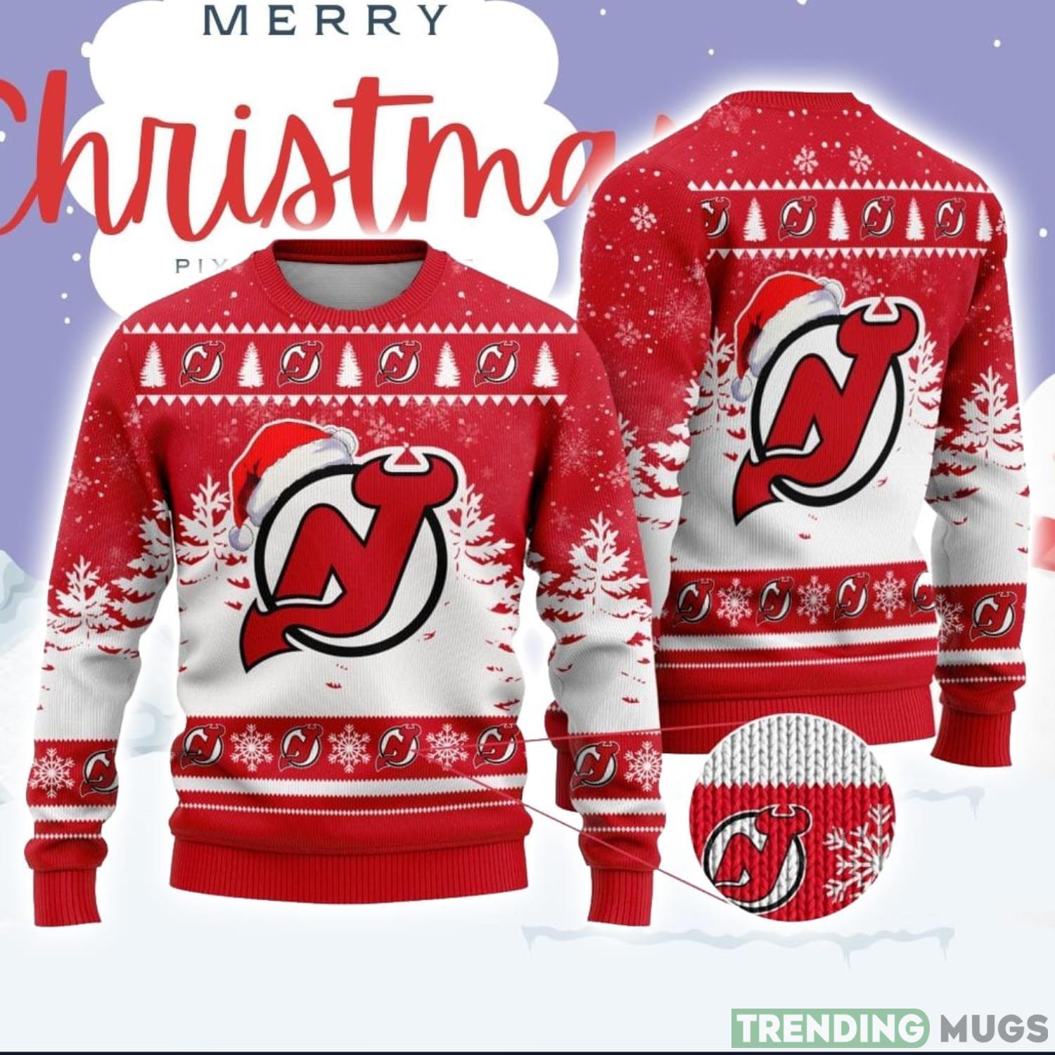 NHL New Jersey Devils Logo Wearing Santa Hat Ugly Christmas Sweater For Men And Women Gift Informations: