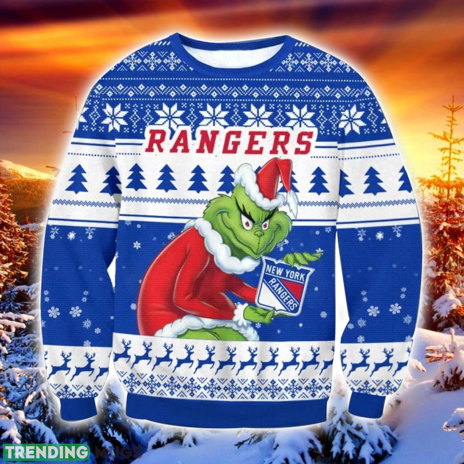 NHL New York Rangers Grinch Ugly Christmas Sweater Trending Sweater For 2023 Christmas Holidays 3D Sweater
