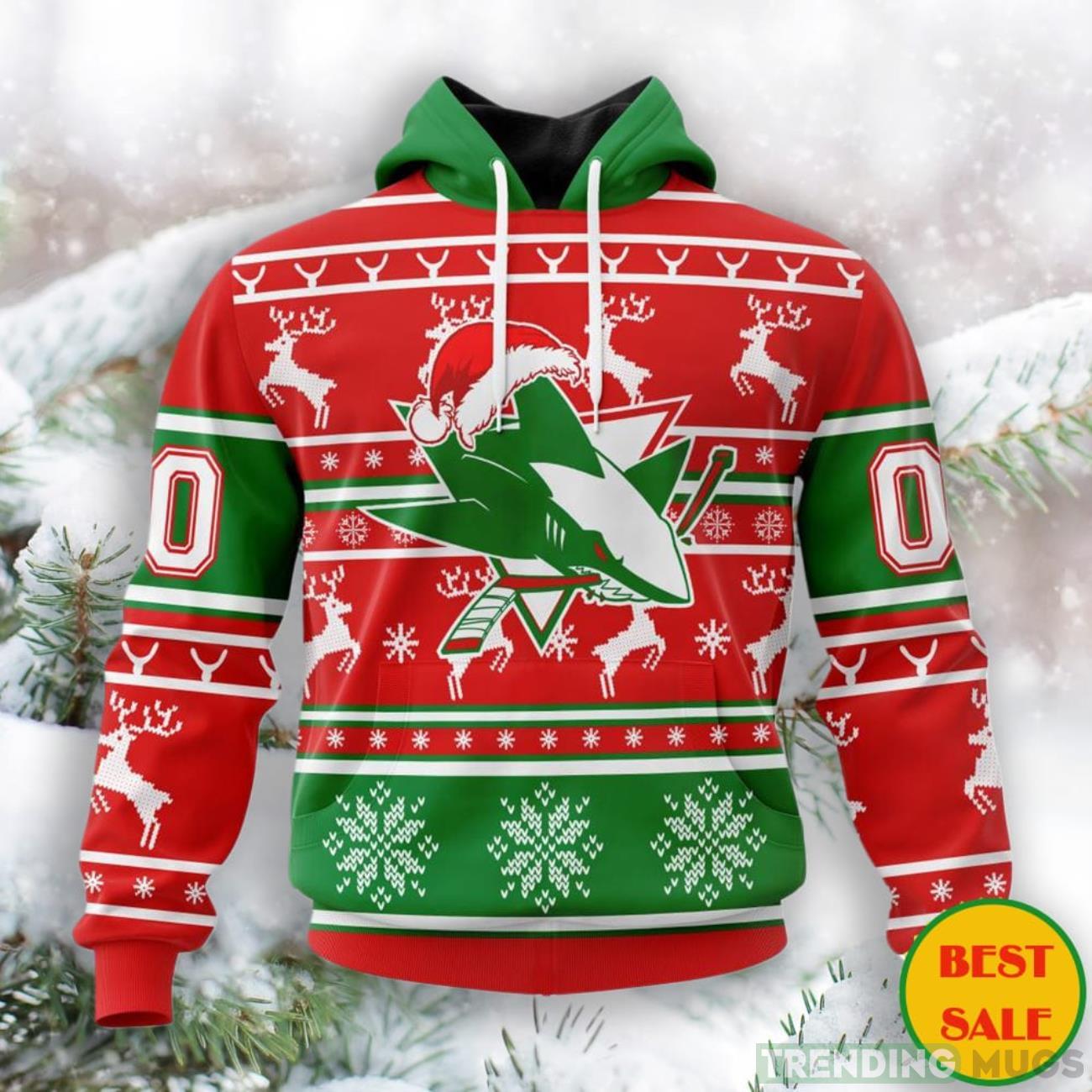 Featuring a jolly Santa Claus wearing the iconic San Jose Sharks jersey, this hoodie is sure to spread holiday cheer wherever you go. The 3D design adds a fun and eye-catching element, making it a standout piece during holiday gatherings or game nights.