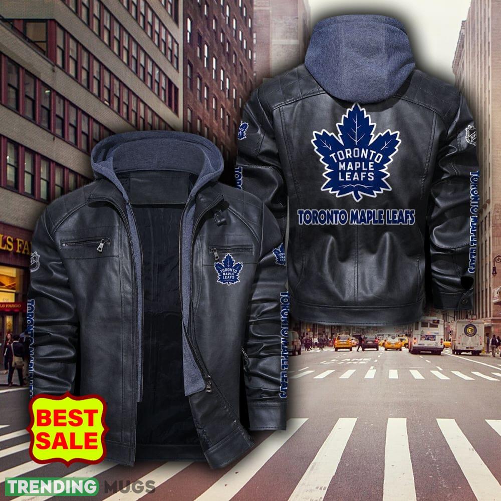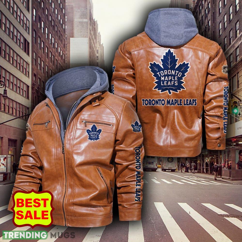 Some of the NHL Toronto Maple Leafs Design 2 Logo Black And Brown Leather Jacket For Fans photos