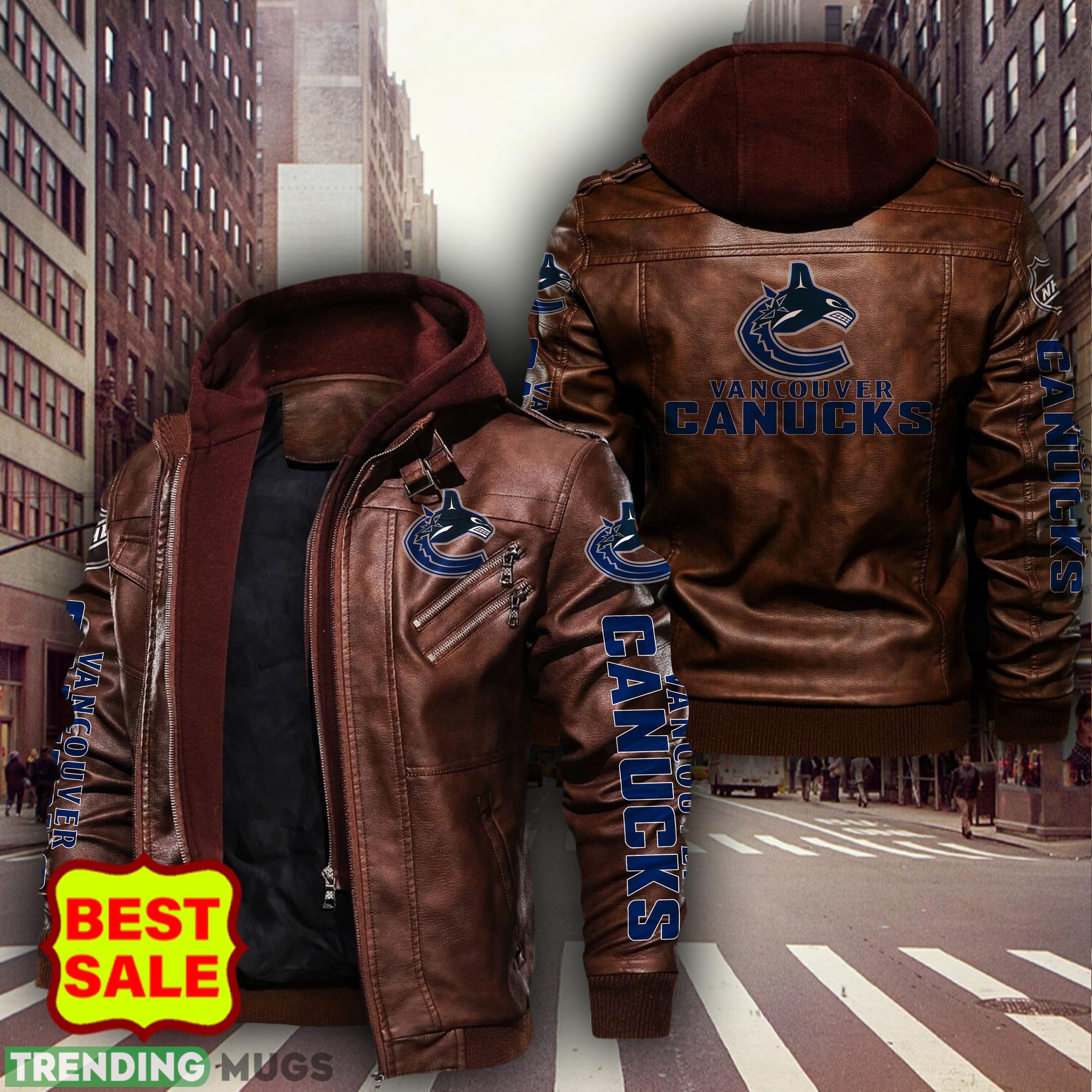 Don’t miss out on the opportunity to showcase your passion for the Canucks in style. Order your very own NHL Vancouver Canucks Logo 4 Black Brown Leather Jacket For Fans today and experience the thrill of being a true Vancouver fan.