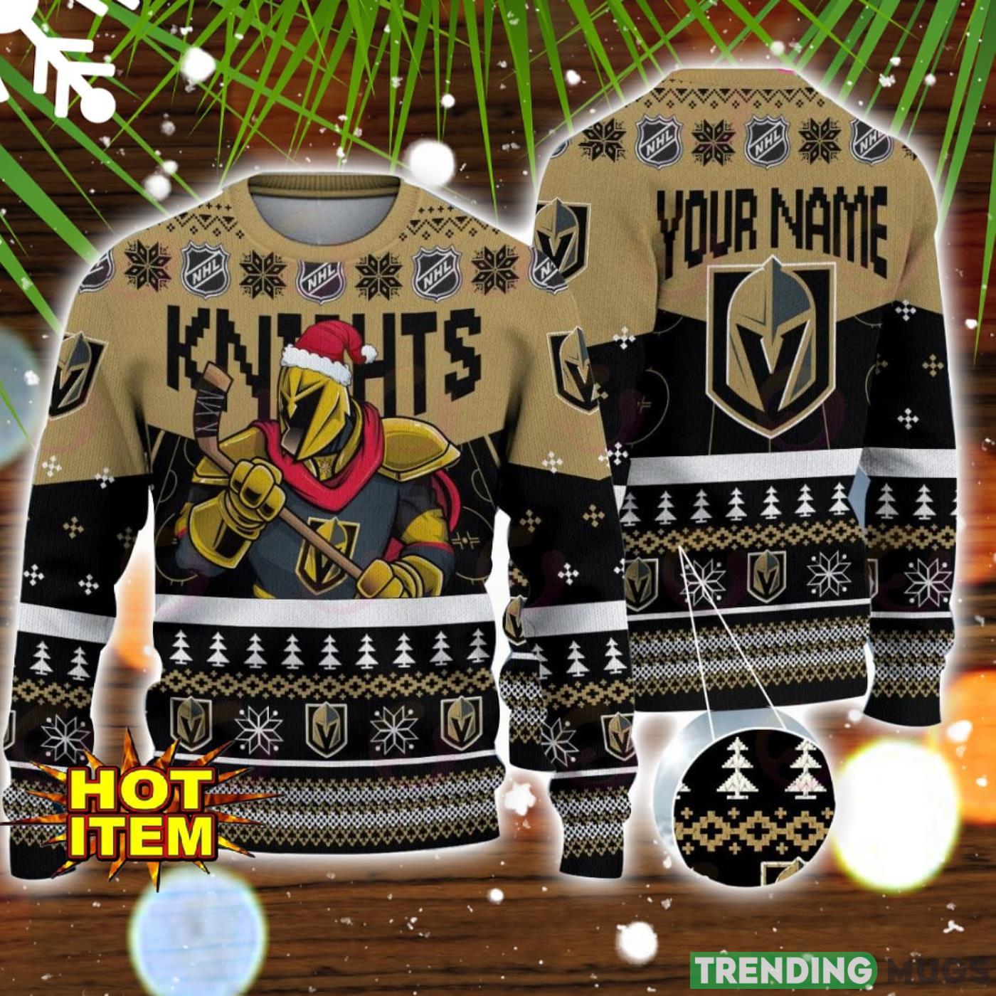 NHL Vegas Golden Knights Angry Mascot Design Ugly Christmas Sweater Christmas Gift For Sport Fans Custom Name Product Photo 1